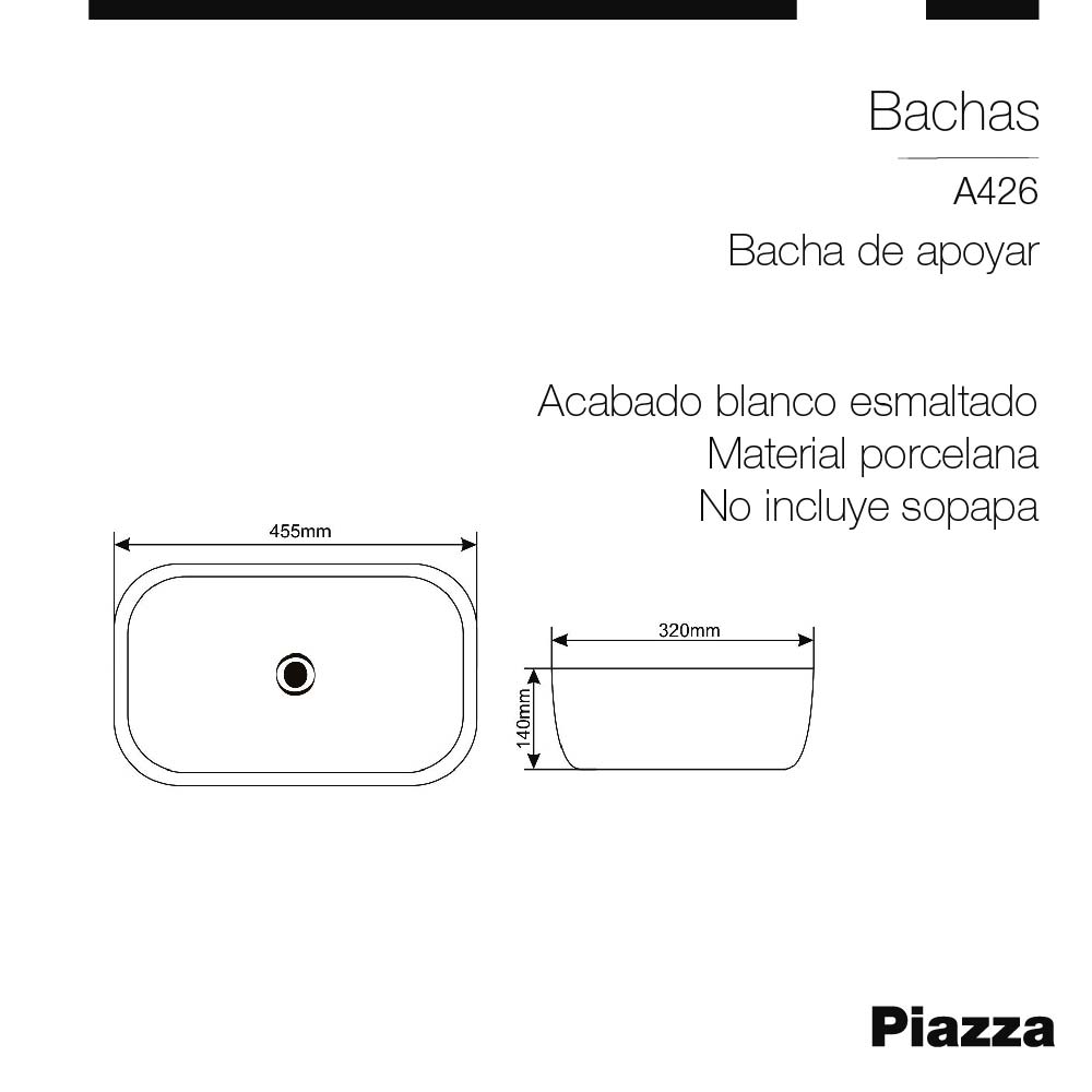 BACHA A426 DE APOYO PIAZZA 45,5 x 32 x 14