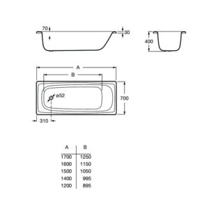 Bañera Chapa Enlozada 120 X 70 Blanca Roca Sacha