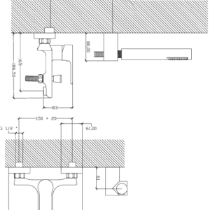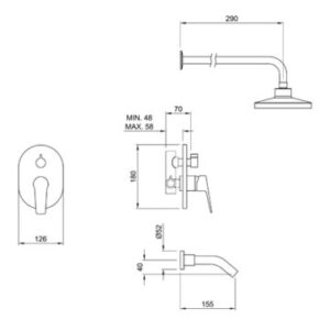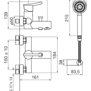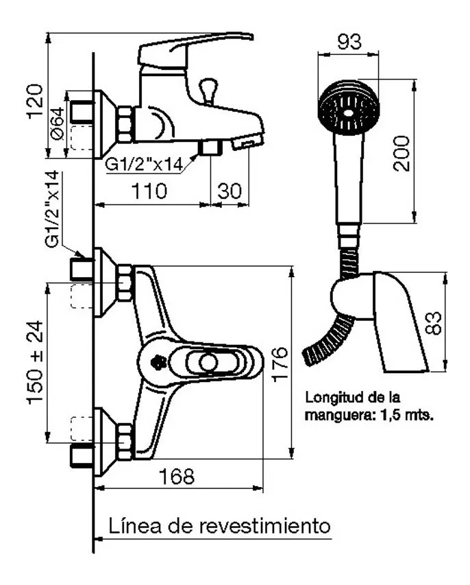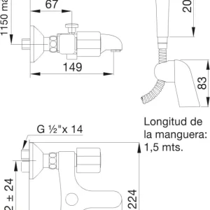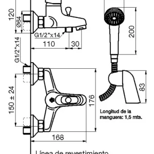 Juego monocomando exterior pared, para bañera y ducha, con transferencia automática y ducha manual autolimpiante incluída.