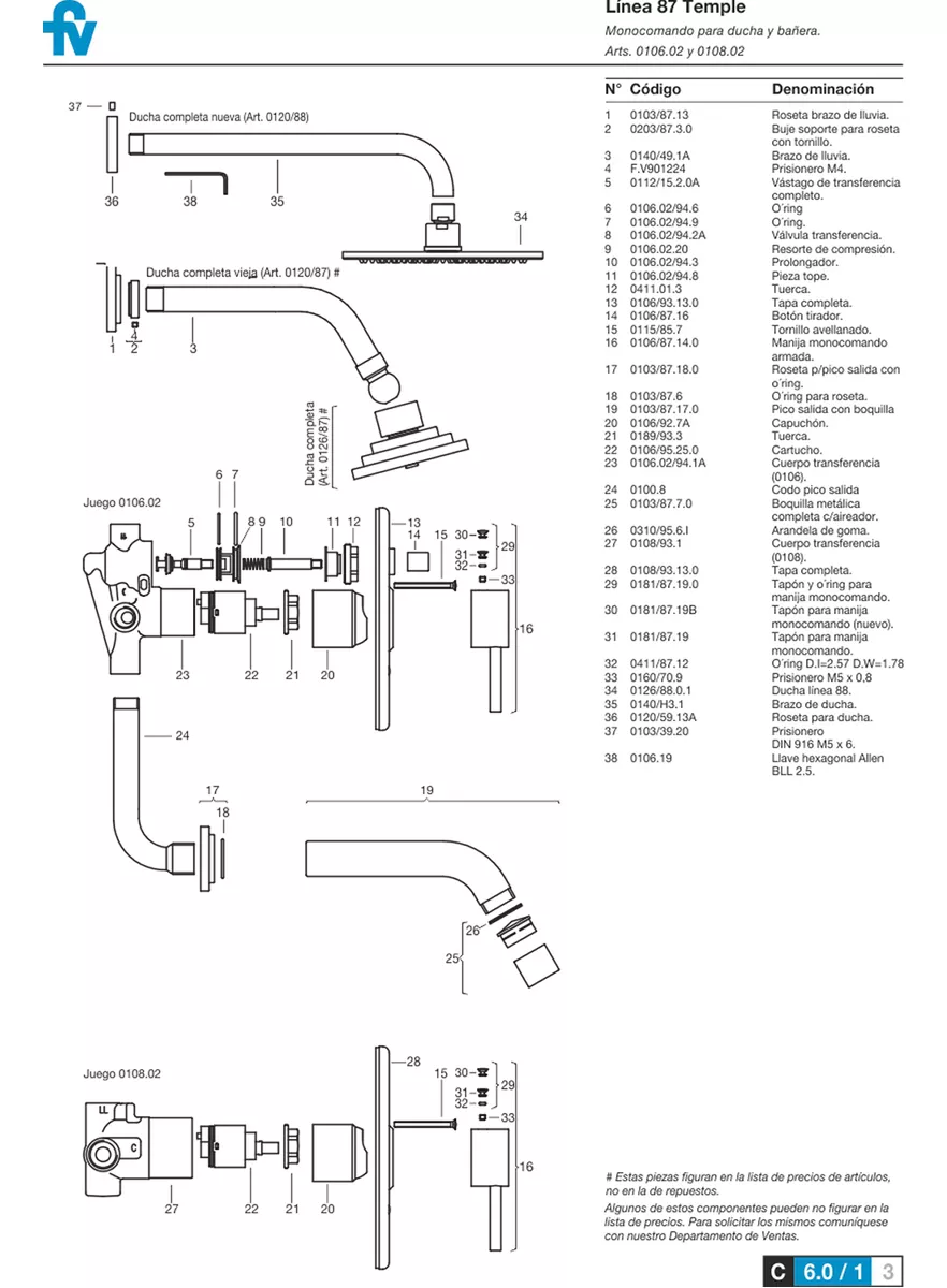 FV JUEGO MONOCOMANDO C/CARTUCHO ALTO CAUDAL