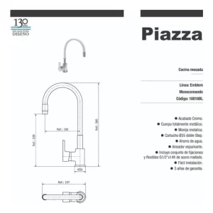 Grifería Gourmet Monocomando Piazza Cocina Emblem Flexible Mezcladora Rociador Blanca (10016BL):