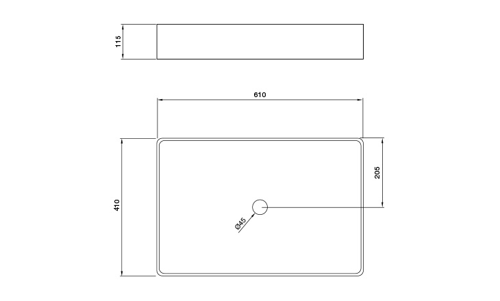 Bacha de apoyar rectangular.