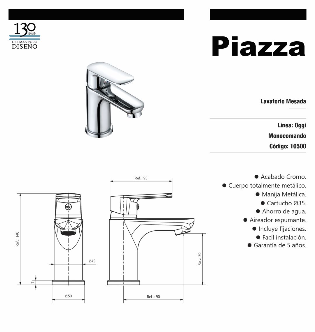 Grifería Lavatorio Monocomando para Mesada Piazza Oggi 10500