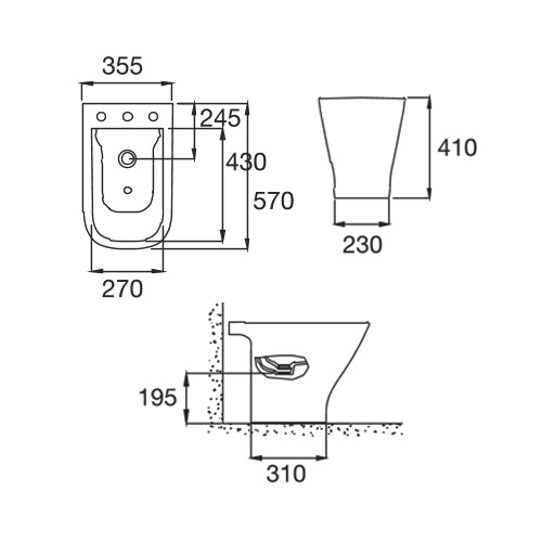 BIDET LOZA SANITARIA ROCA THE GAP DE 3 AGUJEROS